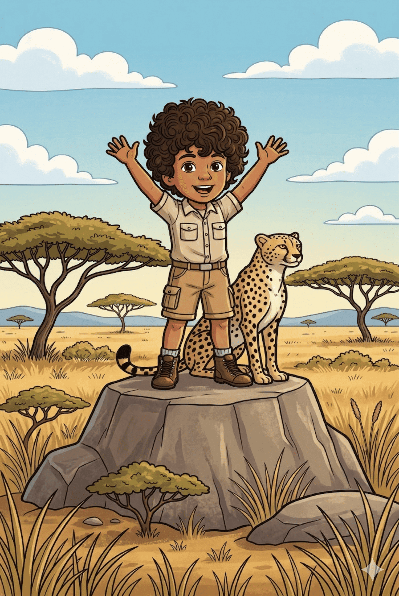 Your child as the hero on every page, drawn in clear black line, ready to print at home in A4.