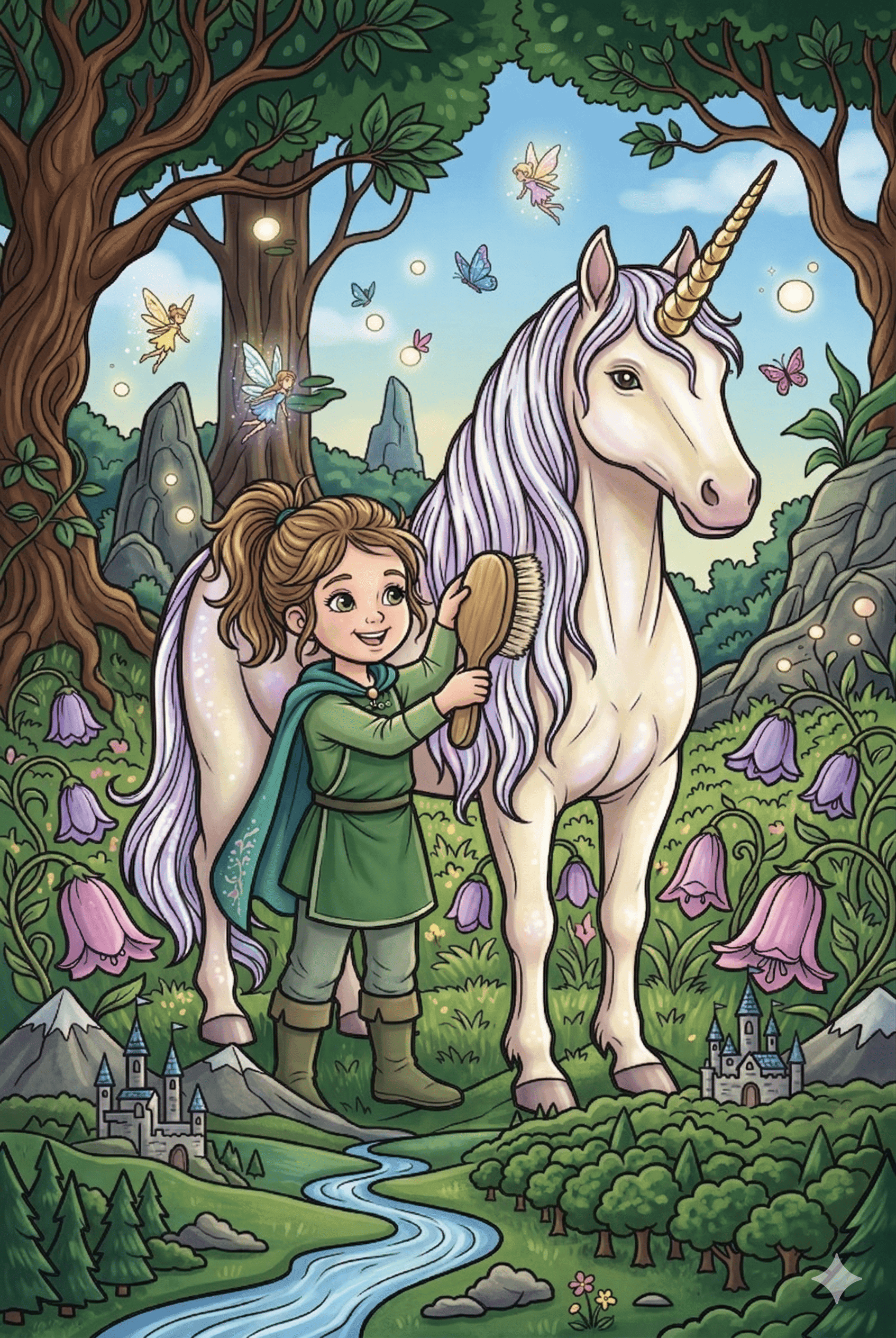 Your child as the hero on every page, drawn in clear black line, ready to print at home in A4.